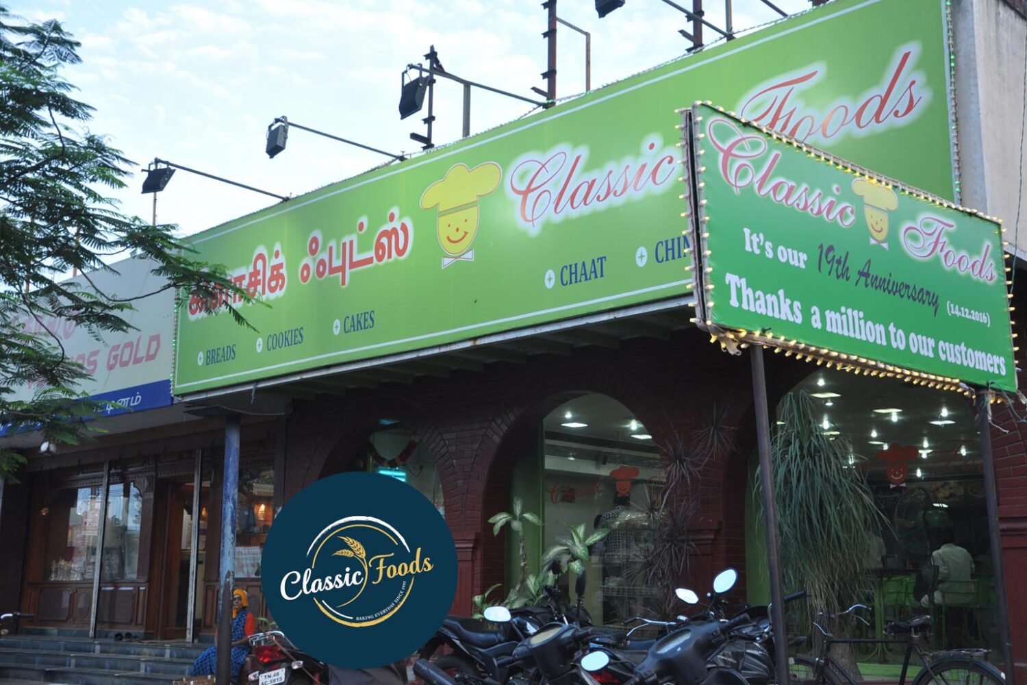Classic Foods was established in 1997 and has more than 25 years of experience in the bakery field. They produce high-quality bread, pastry, and other baked goods. They are well known for making cookies and different varieties of cakes. One of the most enchanting aspects of classic food bakeries is the sensory experience they offer. The aroma of freshly baked bread wafts through the air, enticing customers with its warm, comforting embrace. They provide more than 100 varieties of cakes. Classic Foods is a dynamic, domestically oriented company with production facilities inside the main showroom opposite the Tiruchirappalli Head Post Office, a branch at Sundar Nagar, and a snacker at the National Institute of Technology, Tiruchirappalli.